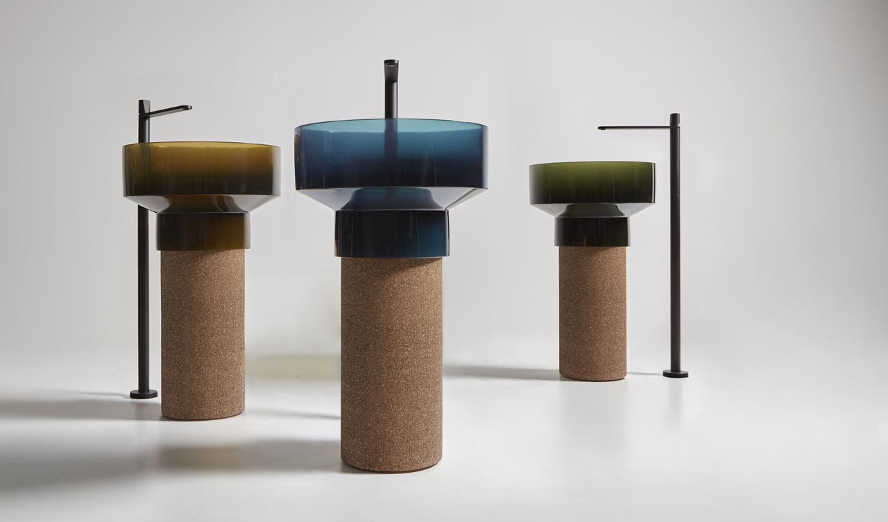 - How it is made The base is made of recovered cork that then gets hand-finished in order to become soft to the touch, while the basin is made of Cristalmood: a material pairing that results in completely innovative aesthetics and functionality. Cork is a natural, fireproof, elastic and light element unafraid of humidity; while Cristalmood is a transparent, colorable and resistant resin (developed purposely by antoniolupi) which, beyond offering all the essential functions, is recyclable and eco-sustainable. In addition to the natural cork version, the Borghi base is also available in a toasted cork version (coffee colored), while the basin is available in three shades studied by Gumdesign to create a Tuscan atmosphere: Ceruleo, Oleo and Gran Cru.