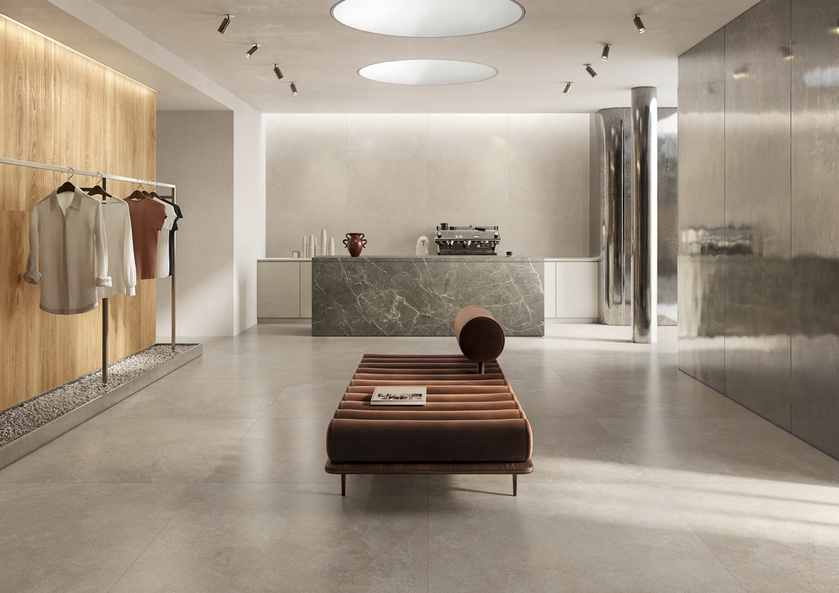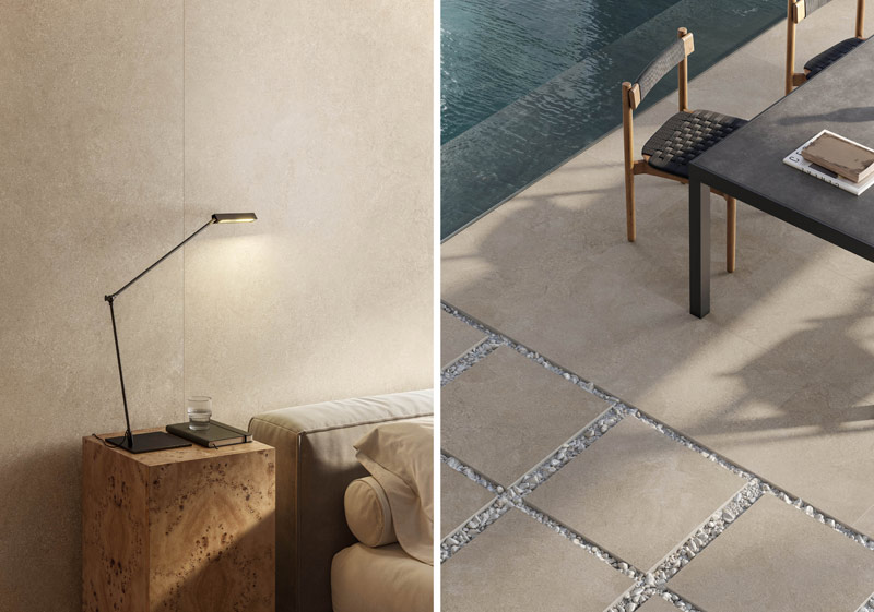 Here we have an elegant and tempered palette that works well with natural materials, fine textiles, and bespoke furniture. The sizes range from the classic 30×60-cm tiles to the imposing 120×178-cm slabs (6-mm thickness), as well as 60×120, 90×90, and 120×120 cm modules. Plus, the collection wouldn’t be complete without 20 mm thicknesses—ideal for dry installation on gravel, grass, or sand.