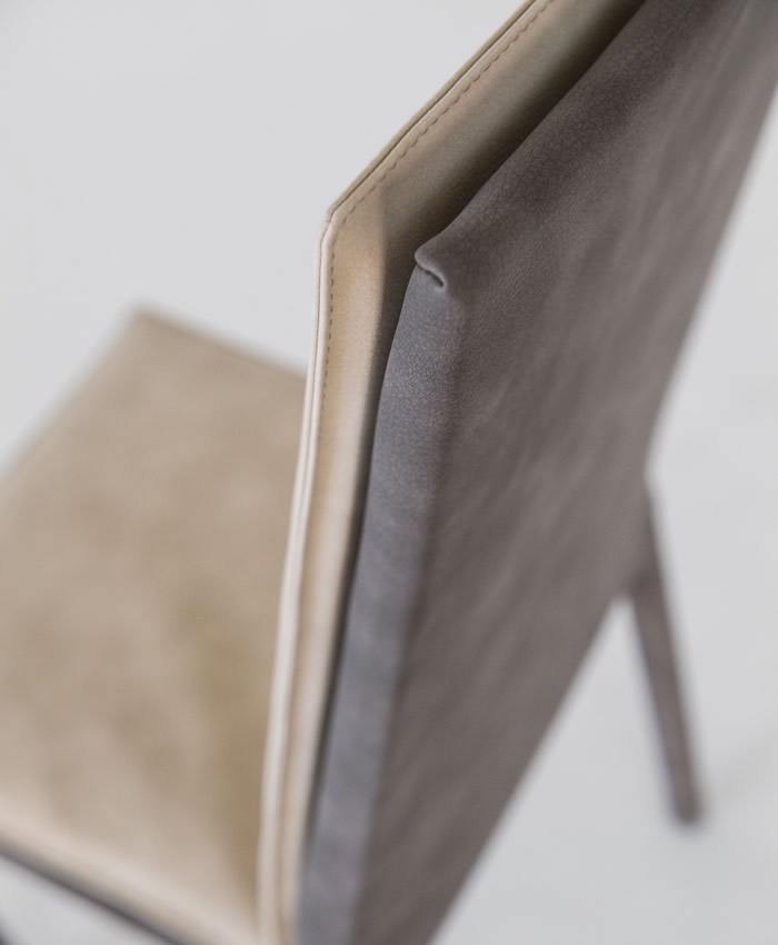 There are countless colors on the market. To satisfy those who are undecided and to avoid having to upholster the chairs with various colors, Riflessi offers chairs in Smacchia fabric or artificial leather which can be freely mixed. It is not necessary to order a complete series of identical chairs, but you can order a Slim chair by color and freely mix them. If you wish, Riflessi even makes lots of slipcover models and even chairs with two-tone upholstery.