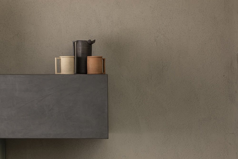 A bold yet subtle coating, Argille can be endlessly customized and its look modified through the laying process, each time designing a porous and velvety surface with an irregular look and thicknesses which envelop the atmosphere and change with the light.