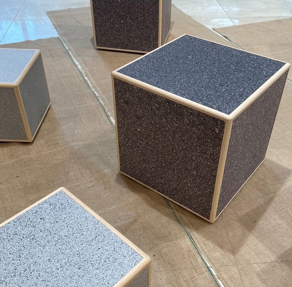 These panels are multifunctional products which are suited for use as the structural base for countless types of furniture: poufs, bookcases, tables, chairs, wardrobes and covers with a low environmental impact. Each panel contains small irregularities and imperfections which make them unique and different from the others. Its granite-effect texture is just one more thing which makes the Paneco furniture exclusive and inimitable.