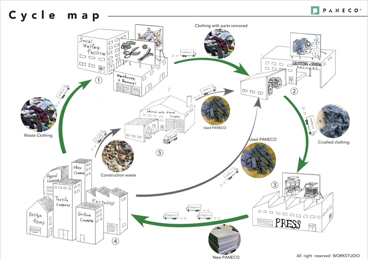 So, why not recover the fabric waste and use it as a raw material for interior design? This was the idea of Paneco which, under the leadership of CEO Kazuhiro Hara, has undertaken a genuine journey into the textile industry to recover all of the fabric, leather and carbon fiber waste possible to work and transform it, bringing in various Japanese social organizations as well.