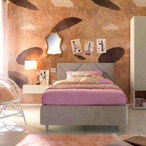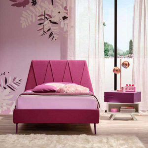 Available in various sizes, the Peak Plus Poly bed has a headboard with raised stitching and metal legs. These artisanal yet modern details have been designed for girls looking for elegance and comfort in a single piece.