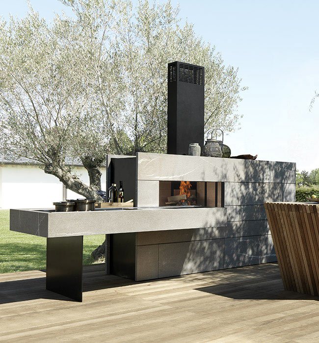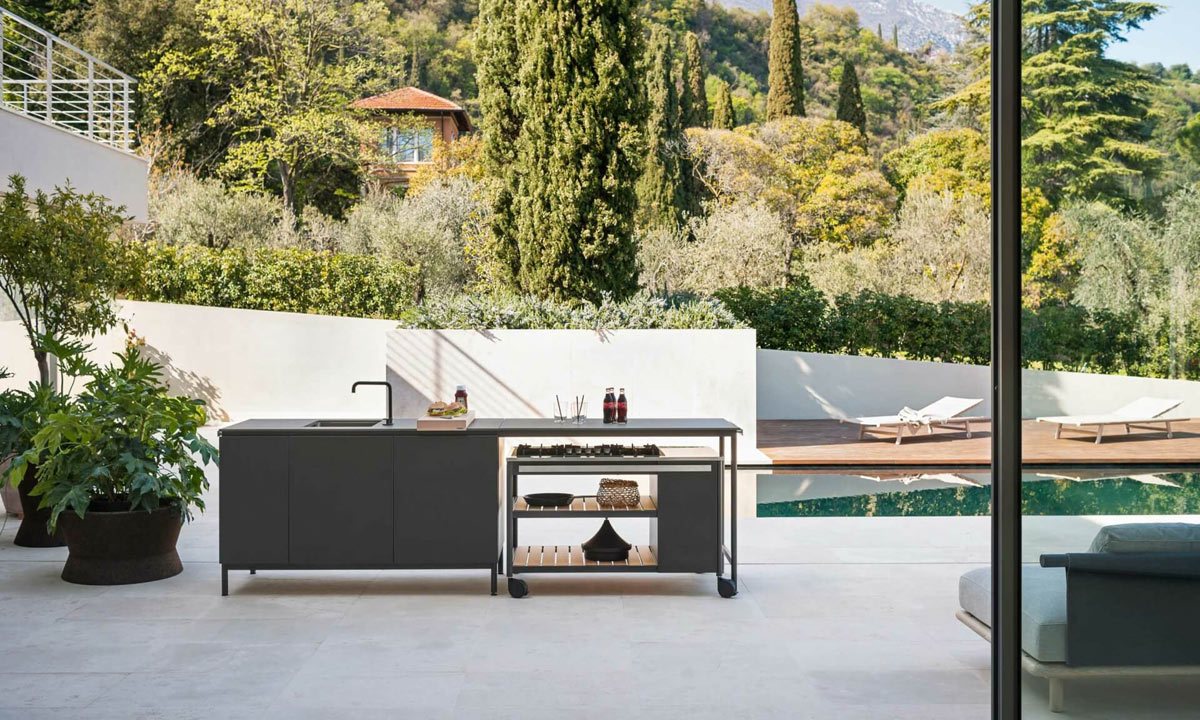 Eating outdoors is a classic summertime activity. And cooking outdoors is this year’s latest trend. Outdoor kitchens are the new hotspots for socializing this summer as they offer the same functionalities of classic indoor kitchens while out in the open. Whether in the garden, on the terrace, at the poolside or under the porch, the latest models are strictly modular and allow us to design and furnish our own custom space. We have chosen six of them which are modern, refined, and have the same sophisticated looks of indoor kitchens while being just as functional. So, to enjoy the summer and feel like you are on vacation, make way for cookouts with friends and dinners under the stars.