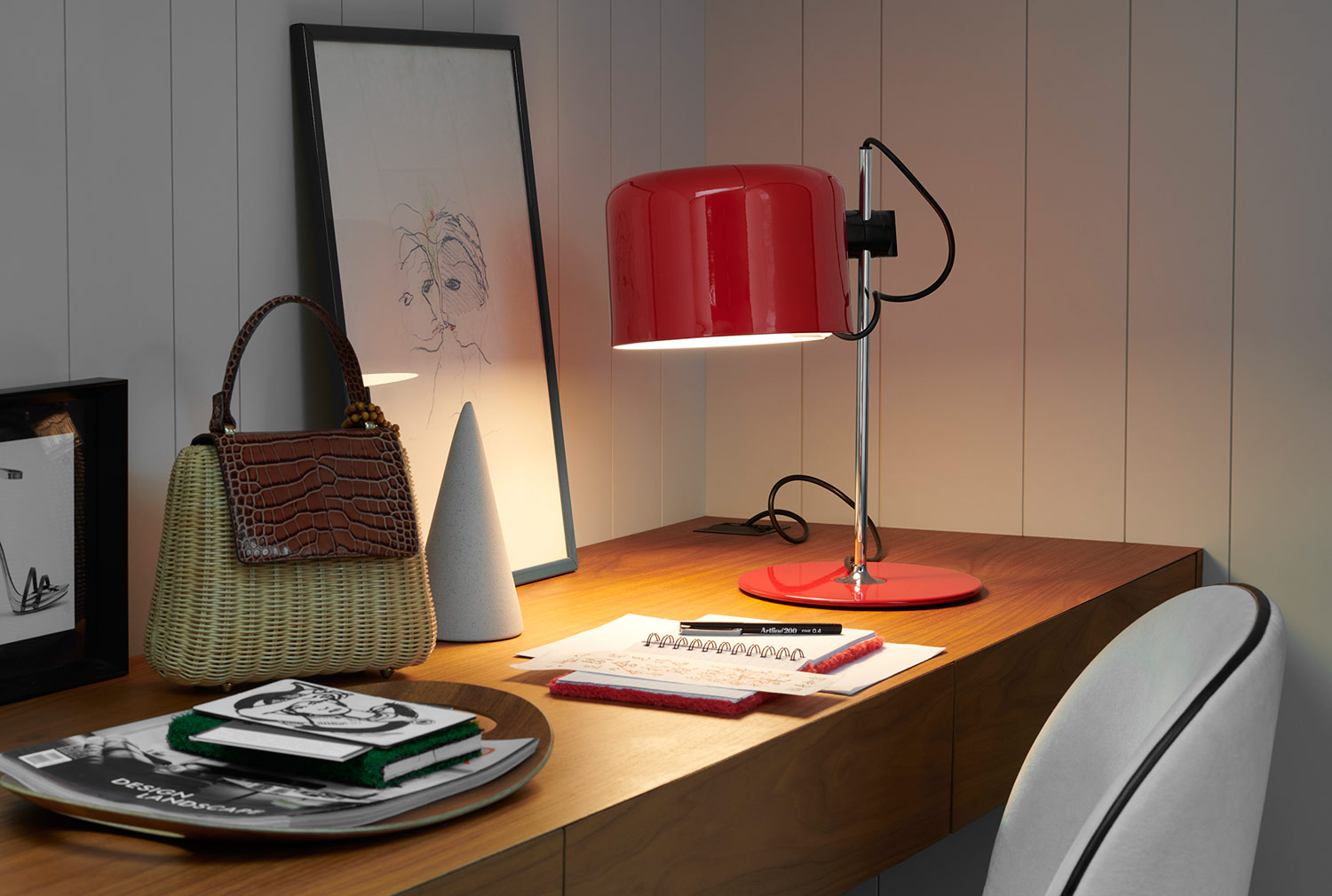 Scarlet red has been added to the Coupé family’s table and floor version. Coupé is a collection designed by the renowned designer Joe Colombo, the creator of many iconic lamps and furnishings which have made Italian and international design history.
