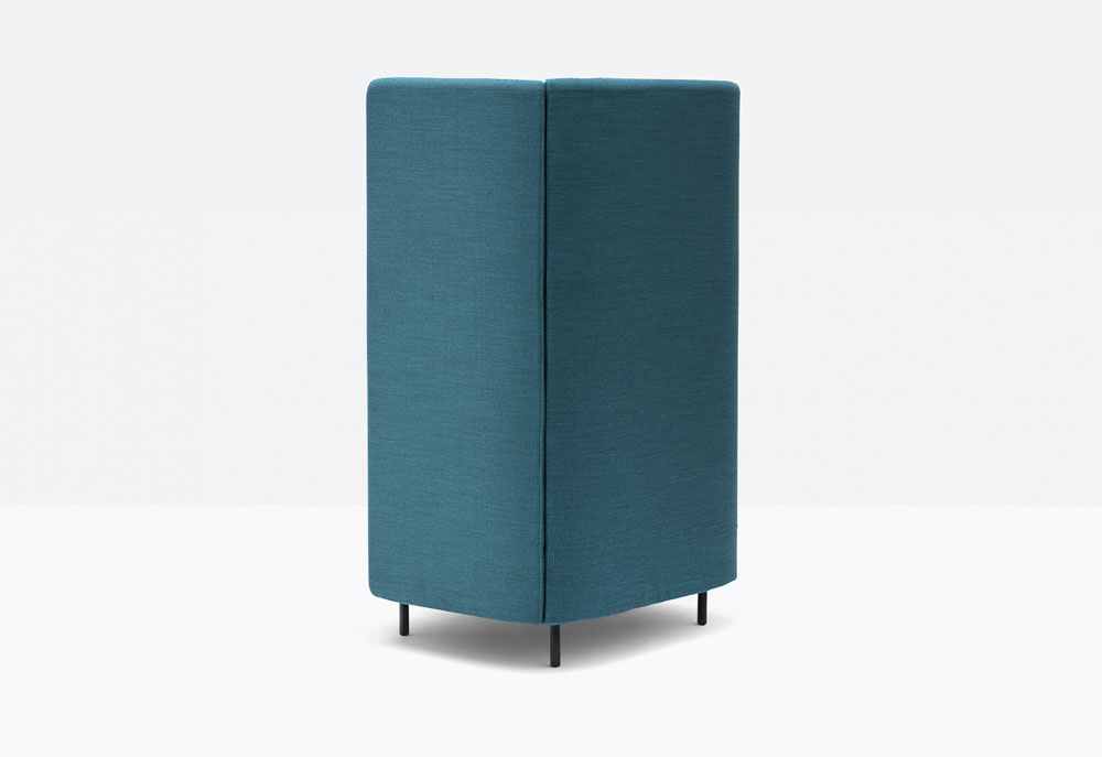 - How it is made It is made in a polyurethane foam supported by elastic belts on the seats with a steel structure and aluminum legs. The seating perimeter is made up of a soundproofed panel that creates a sort of cocoon and creates the perfect private corner for working or seclusion. Planned also in a sofa version, it can be accessorized with a reclinable table.