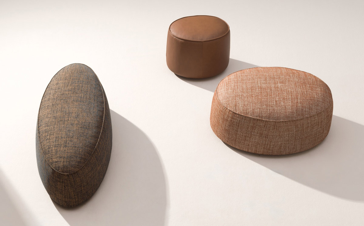 From rugs to informal seating, from sculptural low tables to outdoor versions, the new products harmoniously combine materials, forms, and colors, creating a complete ecosystem for the modern living room.
