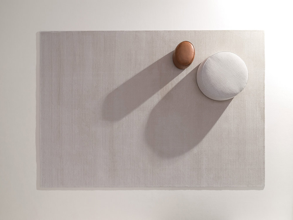 Three rugs, three identities. Daman features a textured weave in recycled PET that is perfect for both indoor and outdoor use. Meanwhile, Gradé explores wool with delicate nuances and fringed borders, blending artisanal craftsmanship with chromatic rigor.