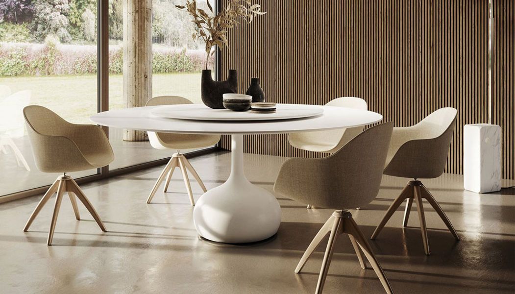 - We chose it because… It goes back to the classic round table and enhances its minimal elegance by adding a significant stylistic and technical detail: the rounded and impressive base which offers the entire project greater balance (and higher performance). It is for those who love classic items, but are looking for that something extra.