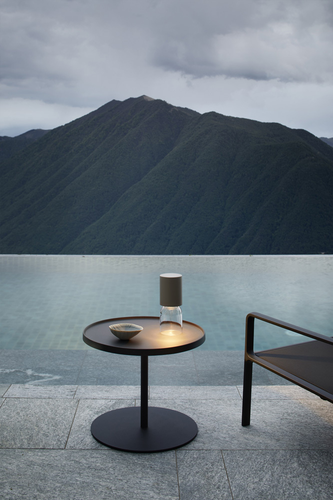 Those lucky enough to have a pool know that you don’t need lots of furniture to turn it into a true haven of relaxation, but just the right pieces. First and foremost, you need to choose durable, water-resistant, easily movable outdoor furniture which is ready to adhere to our movements. As we alternate between swimming and tanning, they must be ready to embrace us. That’s why we have chosen 8 pieces of furniture and accessories which seem to have been made just for us. From the round sunbed which becomes an island of comfort to the rechargeable lantern which lights up our evenings with a romantic touch, the side table offering a quick snack and the minimalist yet super-accessorized shower, they extend the wellbeing a good swim provides to the poolside.