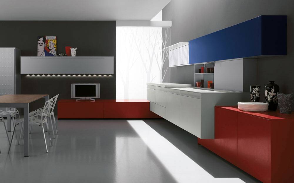 … we can integrate the kitchen in the living room without hiding it. Certain designs turn the wall-mounted cabinets as well as the worktops into pieces of furniture that will harmoniously blend in the main living area. Artematica Synthesis by Valcucine