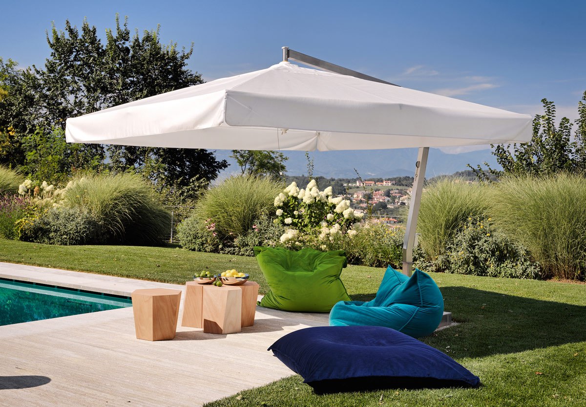 - Side-arm Umbrella: With a sturdy and adjustable structure, this umbrella provides a large shaded area without the need for a center pole. Ideal for creating flexible and organized spaces.