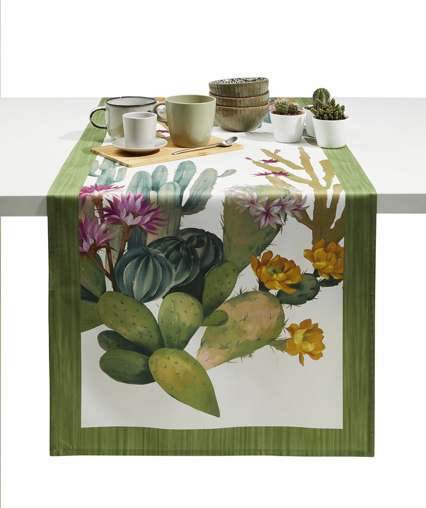 The perfect tablecloth is inspired by the Jardin de Cactus in Lanzarote and brings all the joy of the Canary Islands to the table.