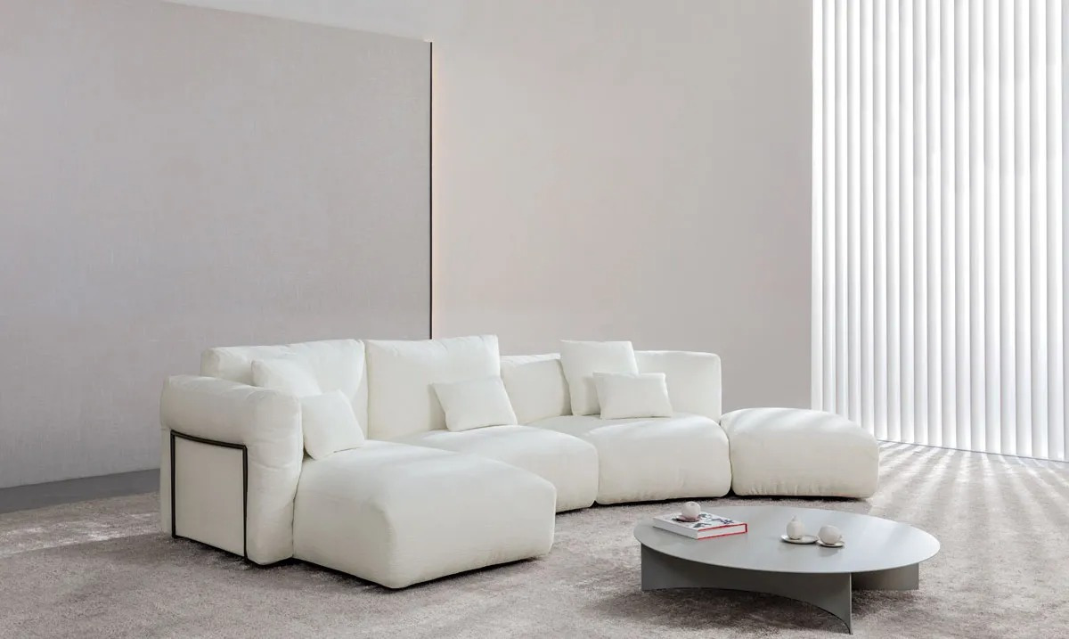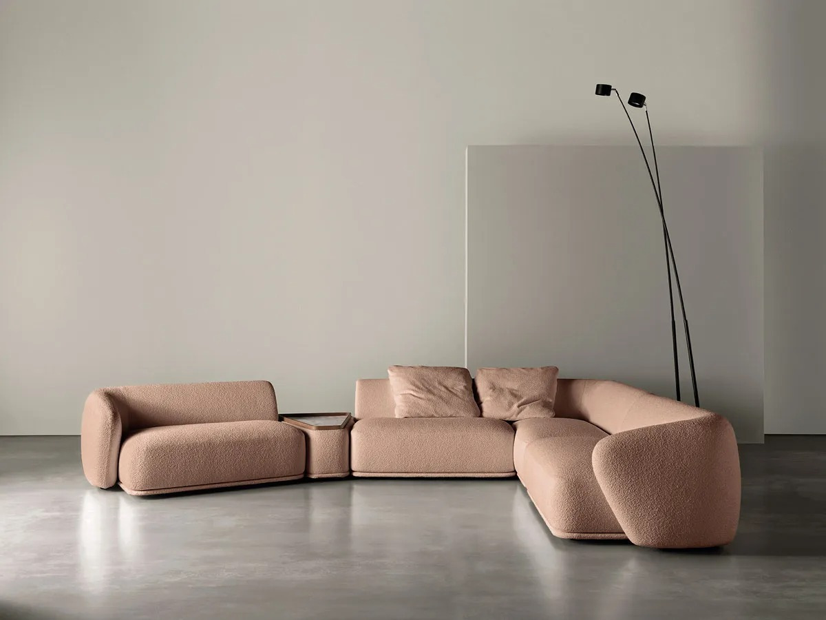When it comes to relaxing in front of the TV, reading, cozying up for a chat, or just taking a minute for yourself after work, the sofa is our best friend. And we all know that when it comes to plush cushions it becomes even more enjoyable to plop down on the sofa. And this is what we’d like to focus our top ten on today. We have chosen ten sofas released in 2022 which have ample and rounded forms. Their absence of legs (or rather, the reduced presence of them) gives these models a monolithic look and their closeness to the ground creates a striking sculptural effect, as if they were islands emerging in the living room. And despite their sizes, these plush sofas give off a sense of softness that catches the eye and invites you to kick back and relax.
