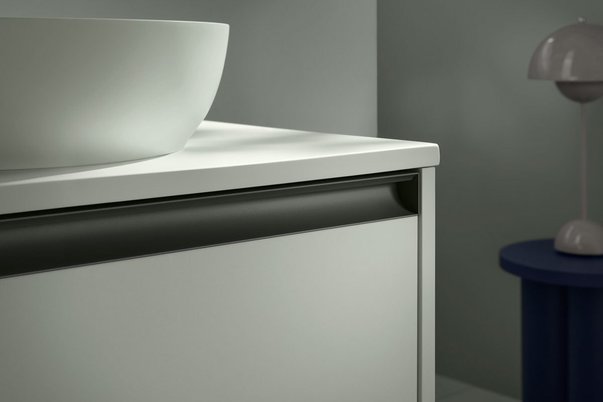 Per creare composizioni a uno o due lavabi, i mobili sono progettati per integrarsi armoniosamente con gli accessori e le bacinelle della serie. Oltre a declinarsi in versione sospesa o da appoggio in diverse misure, i mobili sono completati da raffinati accessori in metallo come le maniglie, i portasciugamani e piedini da appoggio delle basi.