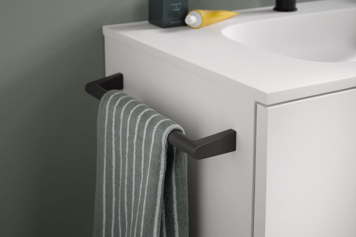 Un ulteriore elemento che fa parte della serie e aiuta nell’organizzazione dello spazio è la colonna sospesa: liberamente posizionabile e affiancabile al mobile lavabo, diventa fondamentale per riporre oggetti o biancheria.