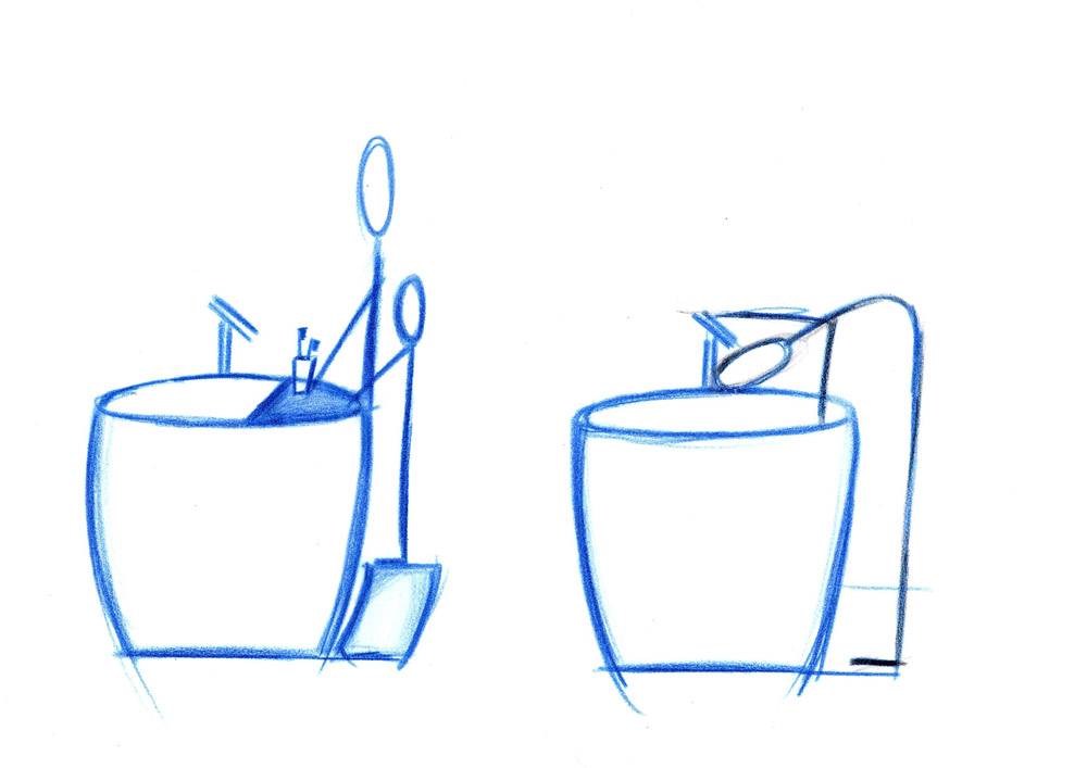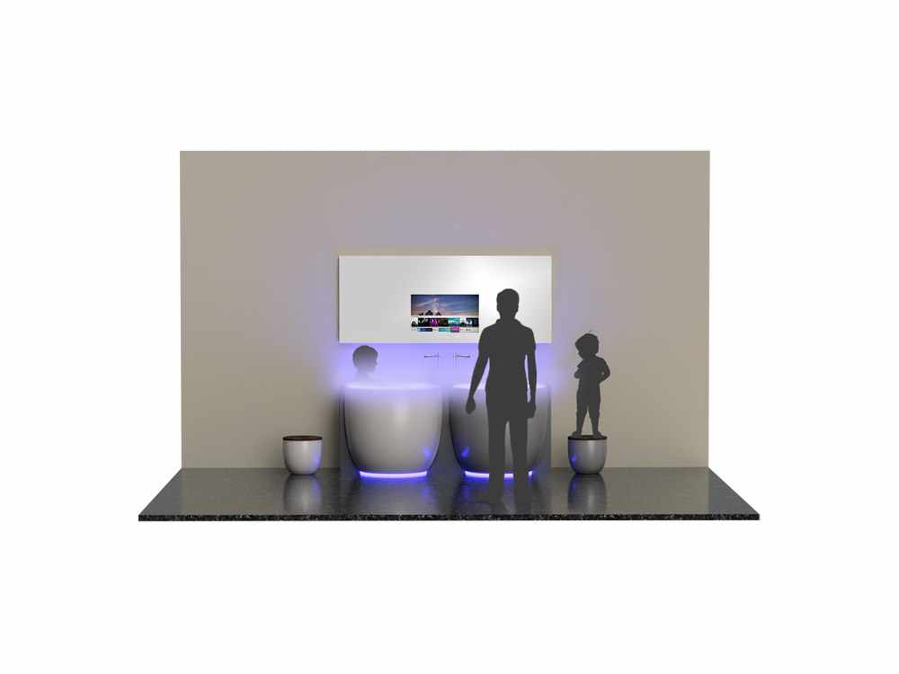 Non c’è dubbio, Ulrike Conca ci offre una visione del bagno innovativa e unica, che comprende anche altri arredi smart: dallo sgabello contenitore con bilancia incorporata che misura massa magra e massa grassa e comunica con lo smartphone per registrare età, metabolismo e attività motoria, allo specchio con schermo touch per accedere a contenuti online e farsi belle.