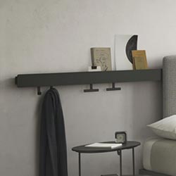 Una barra in alluminio che funge da mensola, portabiti, luce da comodino e persino sistema audio Bluetooth: questa soluzione è perfetta per chi ama lo stile minimal, ma non vuole rinunciare alla comodità.