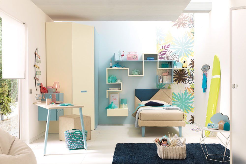 Divertenti come rifugio segreto, le cabine armadio per i più piccoli fanno amare l’ordine anche ai più piccoli. Particolarmente pratica è la soluzione ad angolo, perché consente di sfruttare le spalle ai due lati della cabina. Al suo interno cassetti, mensole e tubi appendiabiti, e una plafoniera che dà la luce. Cabina armadio Wide, Composizione KC310, Moretti Compact.