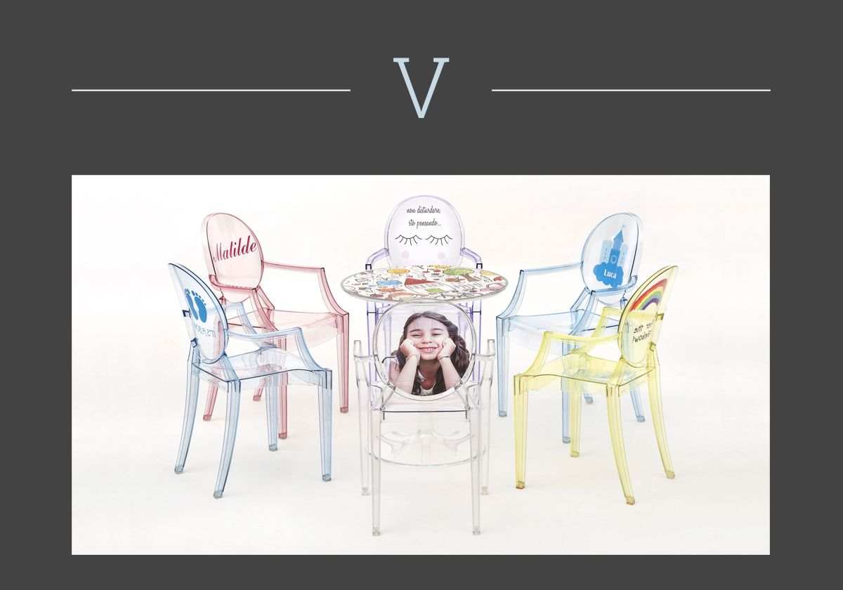 Il nome, un disegno o una dedica per rendere speciale la cameretta: le famose sedie Ghost di Philippe Starck in versione Kids si prestano ad ogni personalizzazione. Leggere e resistenti sono perfette per i piccoli.
