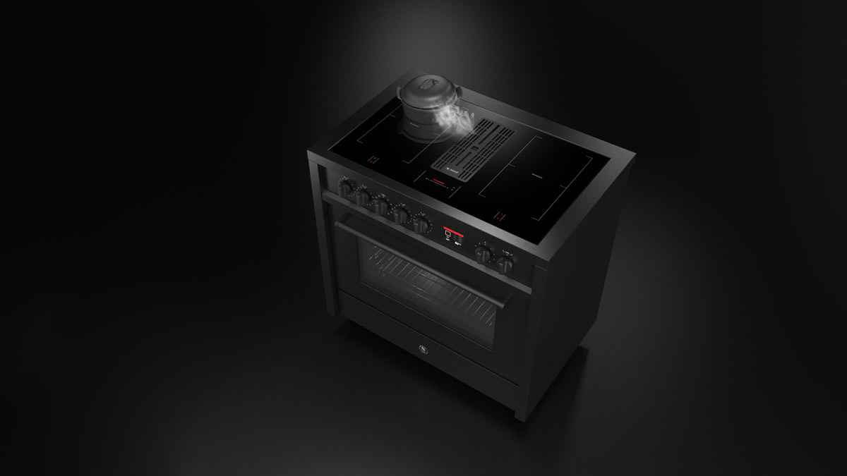 La prima cucina freestanding con sistema di aspirazione brevettato e totalmente integrato racchiude forno, piano cottura e sistema cappa in un unico prodotto.
