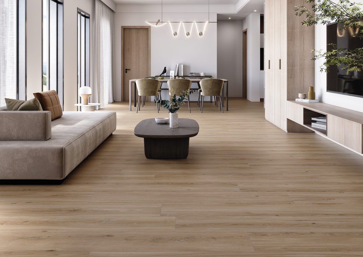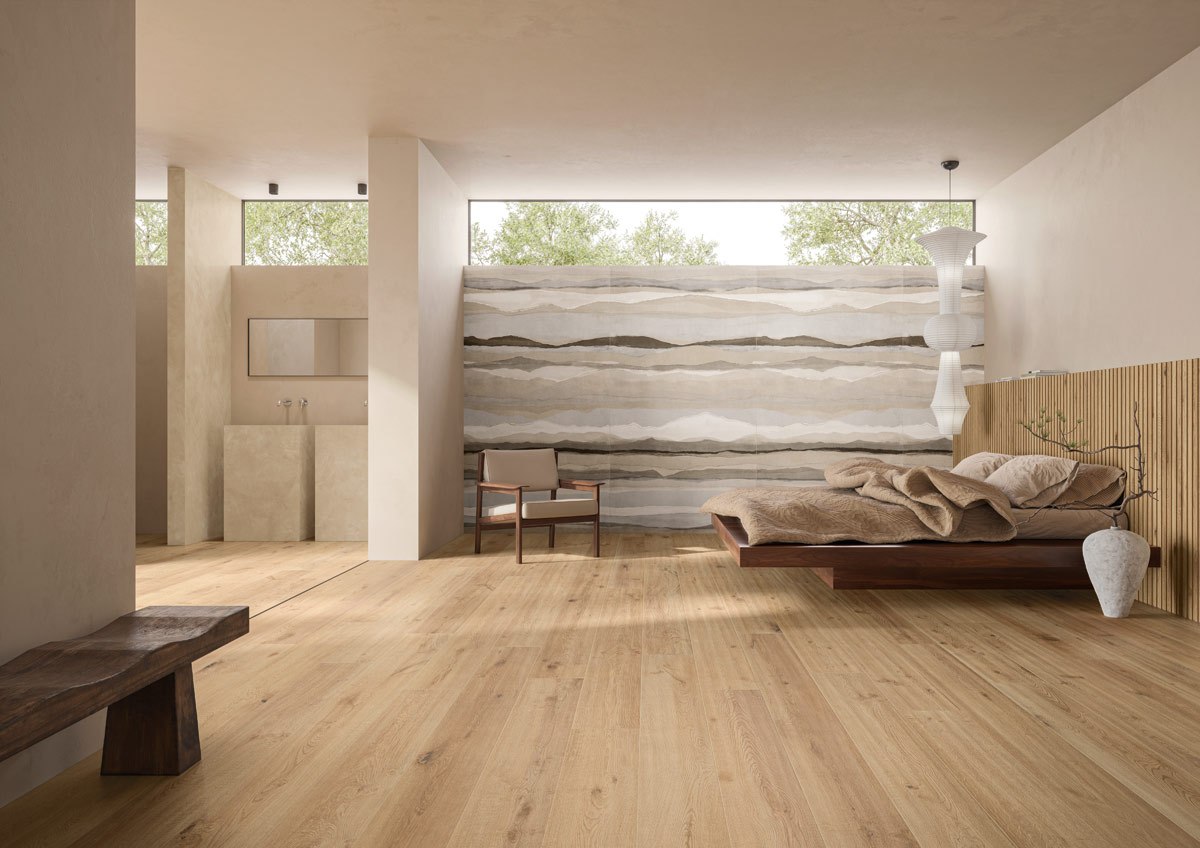 Le collezioni presentate a Cersaie 2024 propongono un’ampia gamma di essenze naturali, ciascuna riprodotta con estrema precisione. Rovere, faggio, noce, larice…le migliori essenze sono rappresentate con morbide venature, toni caldi e avvolgenti e tutte le loro naturali imperfezioni. Queste superfici, infatti, sono il risultato di un lavoro meticoloso che cattura i dettagli del legno naturale, dai nodi alle sfumature cromatiche.