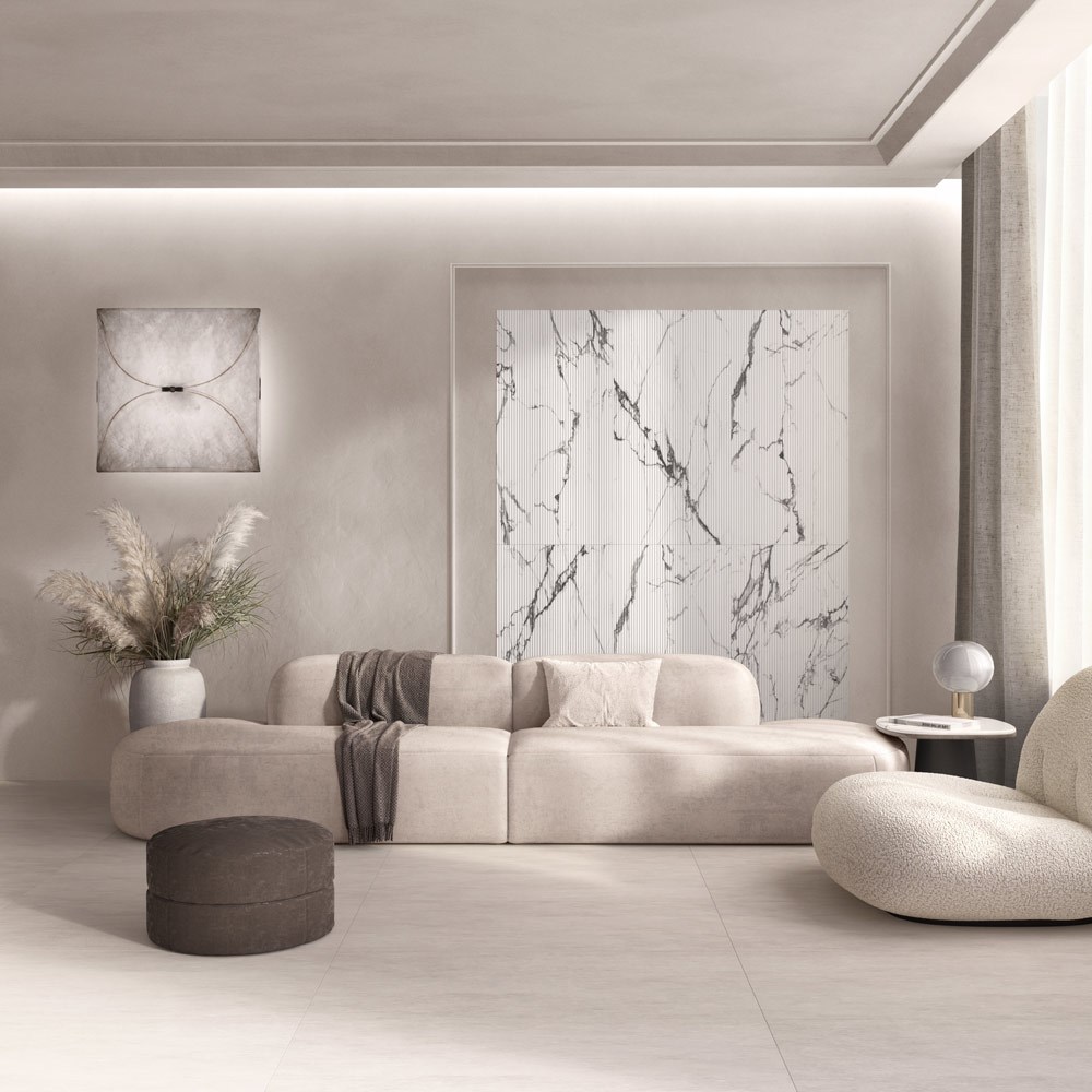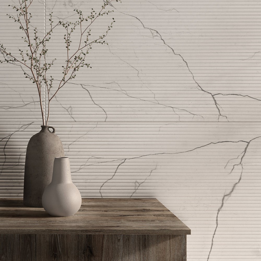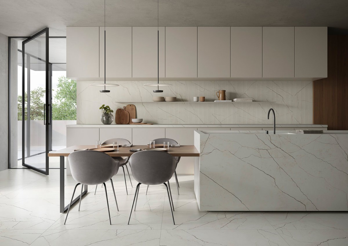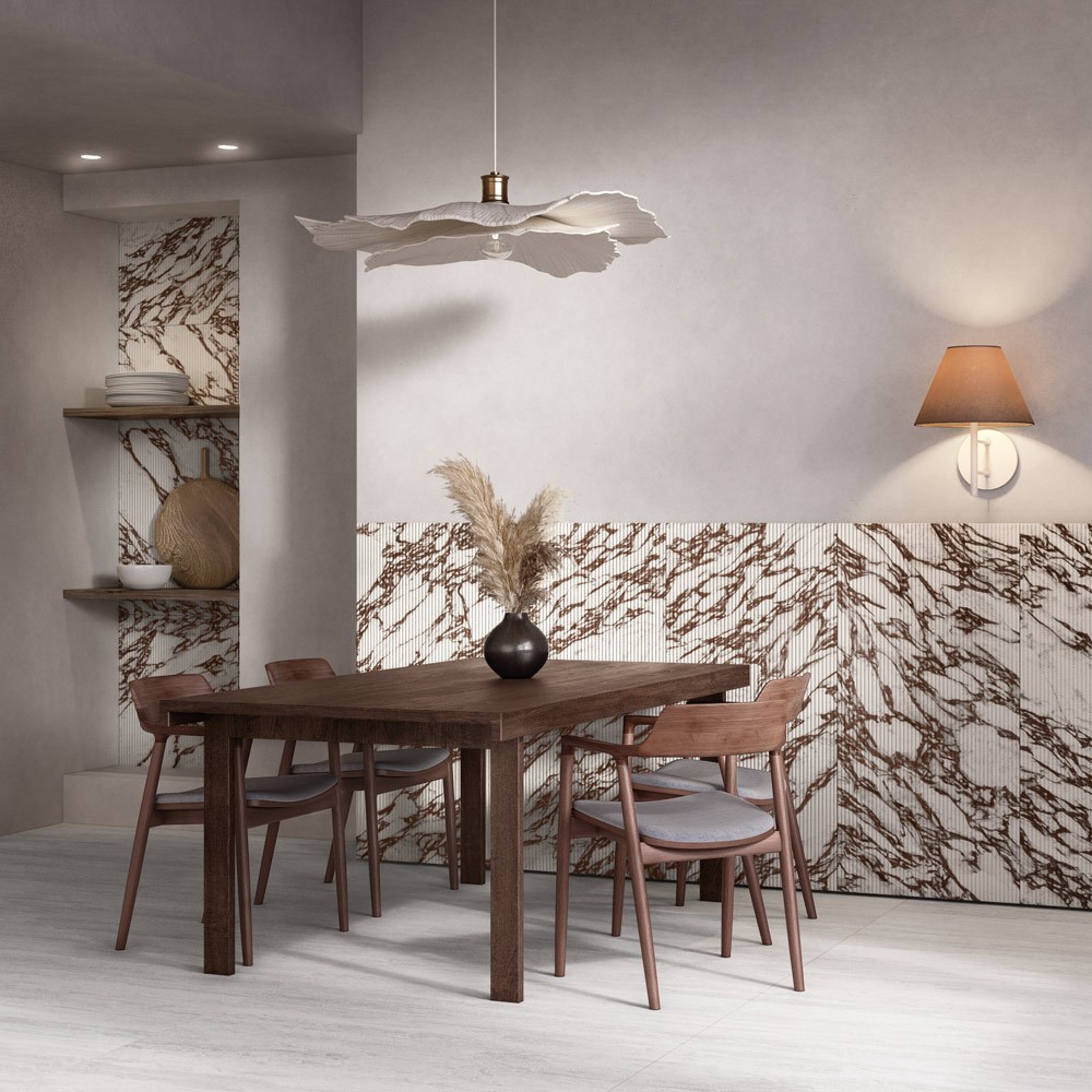 Casalgrande Padana trasforma il decoro cannettato in un elemento di design versatile e contemporaneo, capace di esaltare ogni angolo della casa: dal living alla cucina, dal bagno alla zona notte.