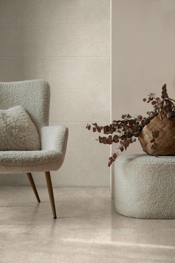 Oltre alla variante per pavimenti, la collezione si completa con Tiempo Wall, un rivestimento in gres effetto cemento pensato per le pareti. Con una texture morbida e sofisticata, questa soluzione è perfetta per creare contrasti materici tra superfici diverse, dando profondità agli spazi.
