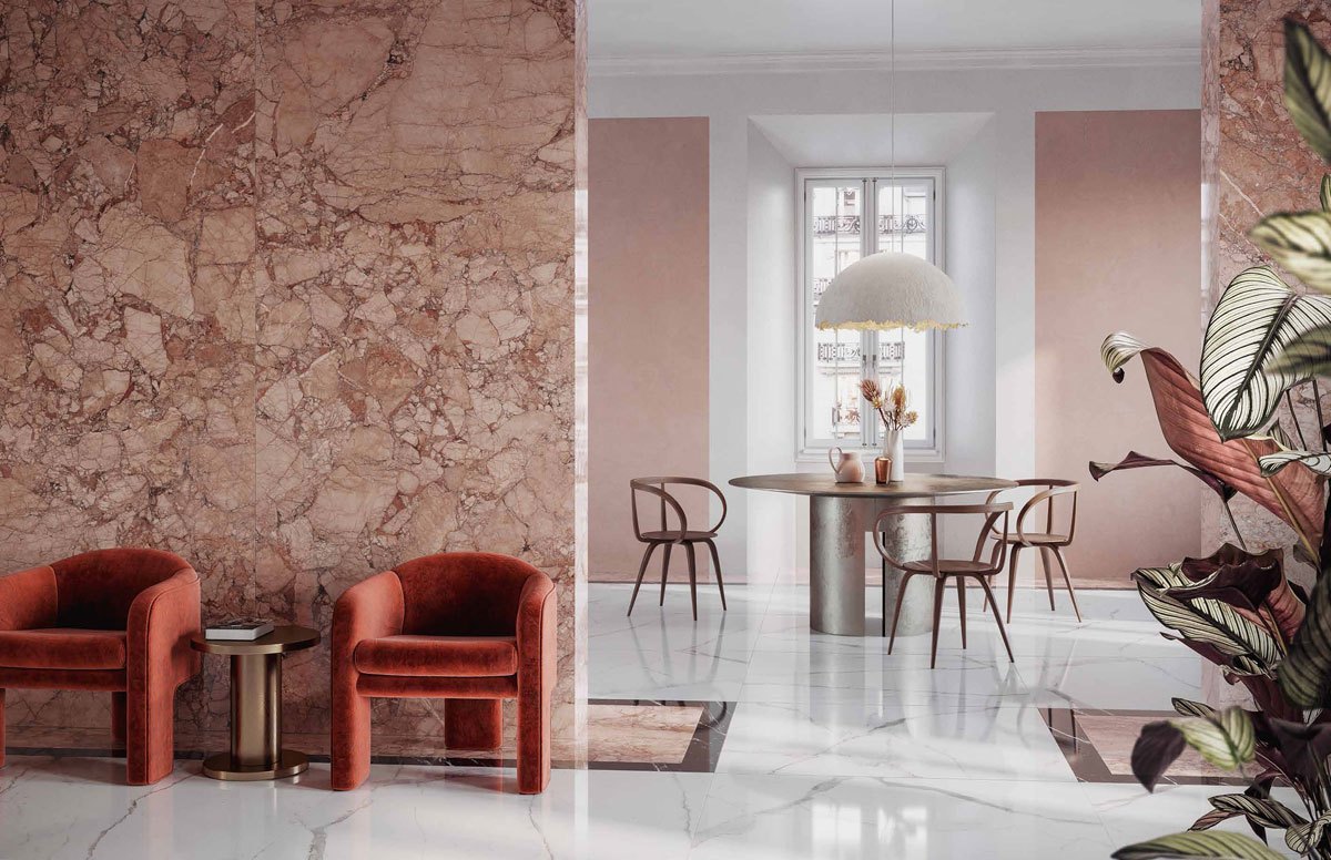 Spazi di stile col gres effetto marmo di Ragno