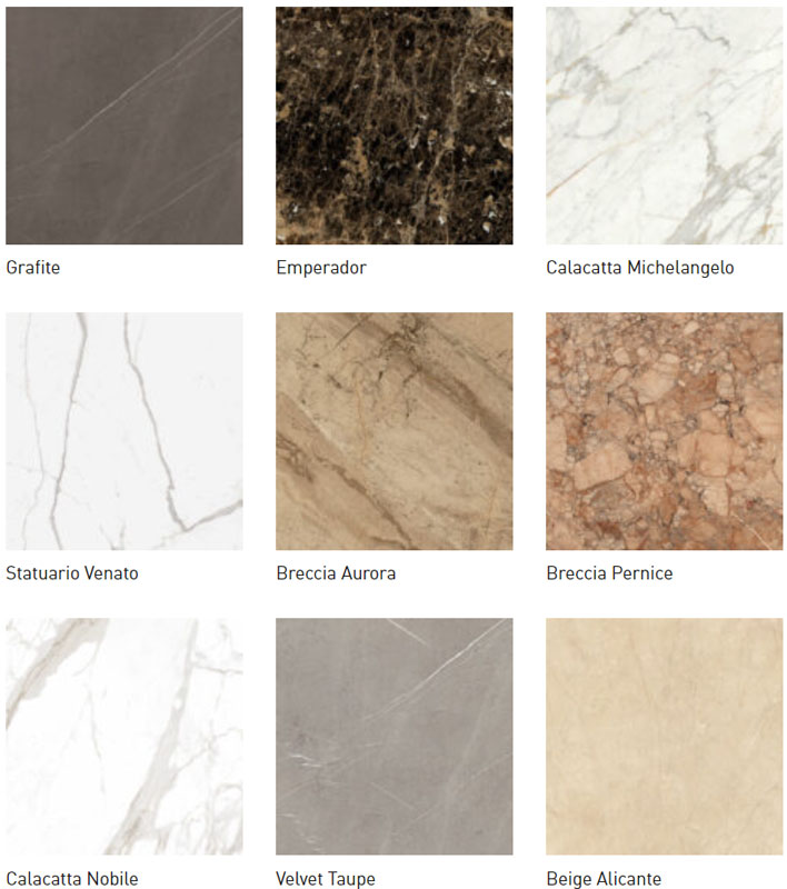 Le caratteristiche del gres effetto marmo di Incanto: formati, colori e decori