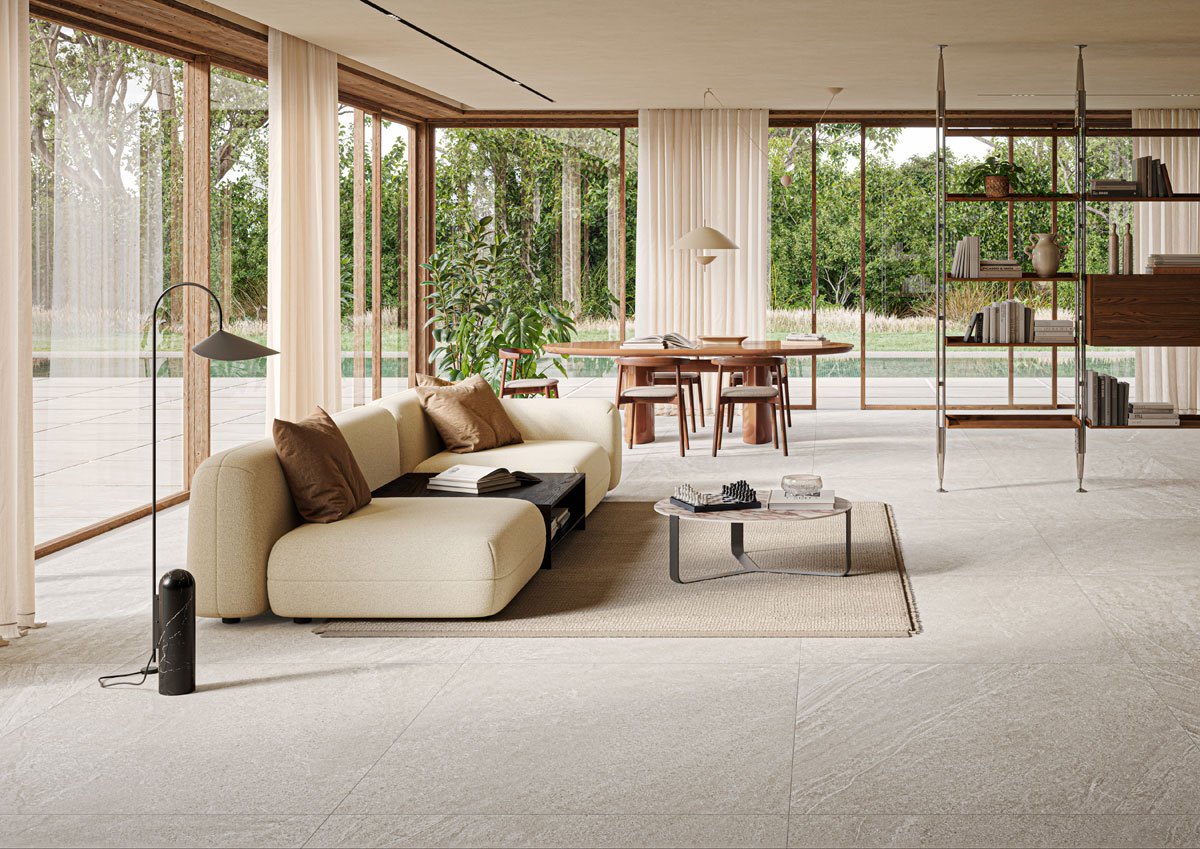 Il gres porcellanato Saxum è realizzato con materie prime naturali, è completamente riciclabile e progettato per durare nel tempo. La sua resistenza riduce la necessità di sostituzioni frequenti, contribuendo a un approccio più sostenibile all’abitare.