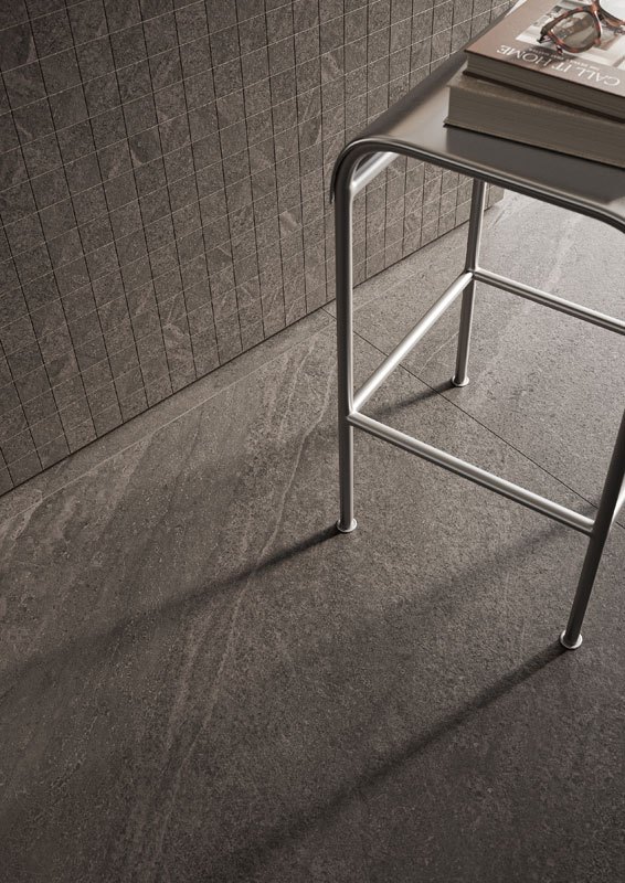 Anche i formati giocano un ruolo chiave nel progetto. Dai grandi moduli 120×120 e 60×120 cm, perfetti per superfici continue e minimali, fino ai formati più contenuti e ai mosaici decorativi, Saxum consente di personalizzare ogni ambiente con coerenza e precisione.