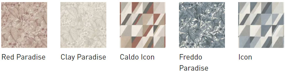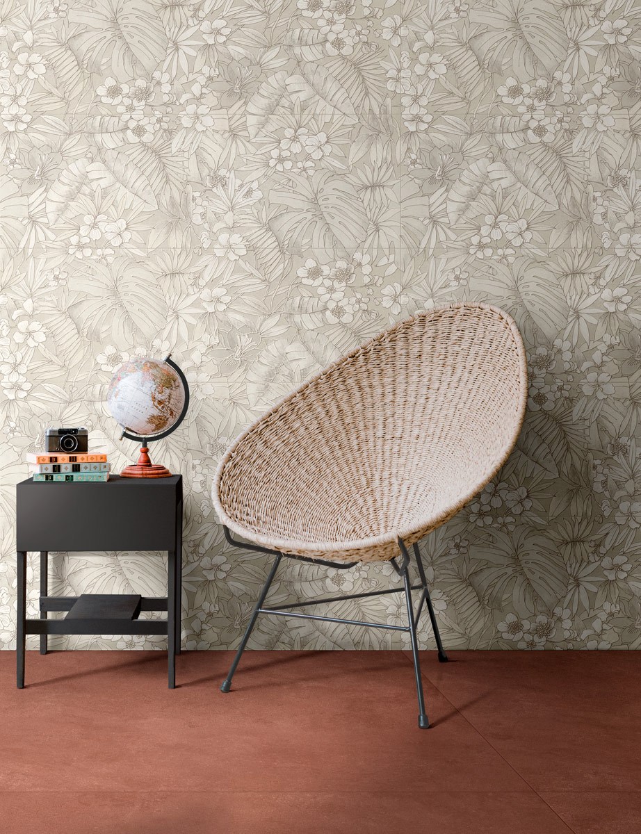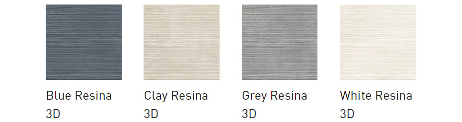 I decori botanici del Decoro Paradise, disponibili in vari colori, e i motivi geometrici del Decoro Icon creano soluzioni eleganti e moderne. Inoltre, la Struttura 3D Resina enfatizza la tridimensionalità della superficie grazie a sottili linee a rilievo.
