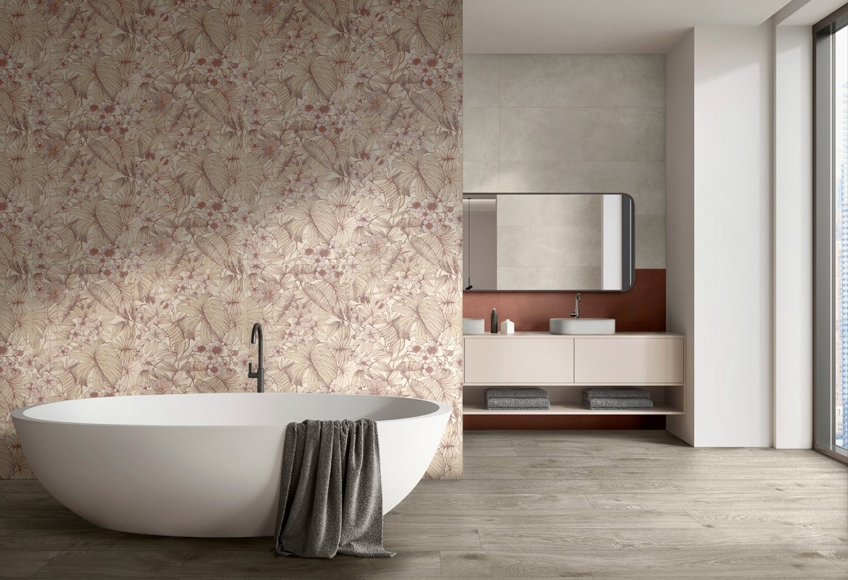 A queste si aggiungono formati più grandi come il 120×278 cm e il 120×120 cm, che permettono di creare continuità tra pavimenti e pareti, per un effetto total look dal sapore contemporaneo.