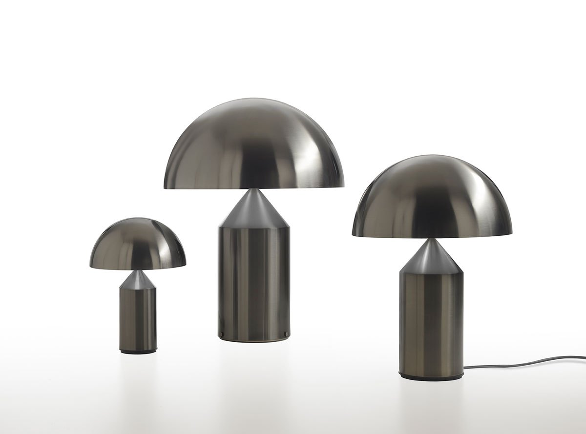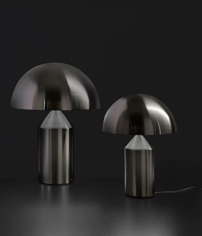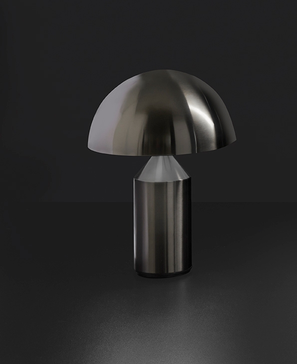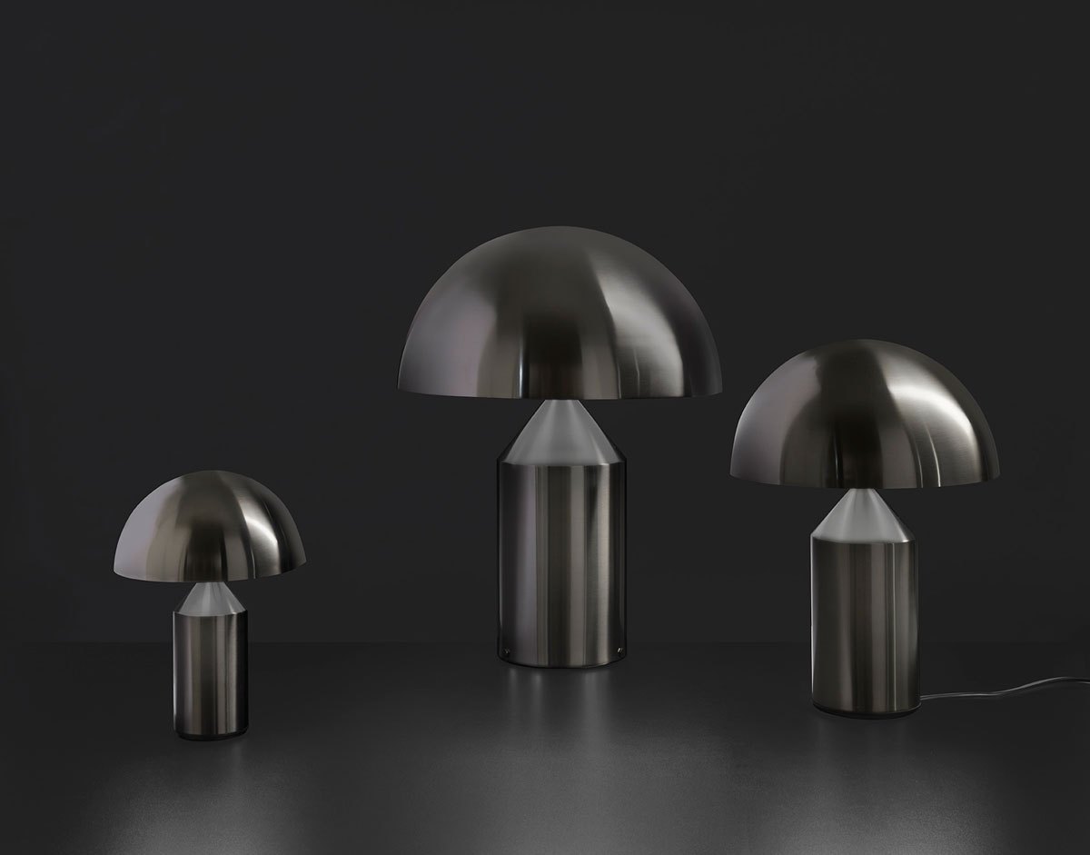 In conclusione, ecco la nuova versione della celebre lampada Atollo di Oluce, progettata da Vico Magistretti nel 1977. Questa icona del design, già premiata con il Compasso d’Oro, viene ora proposta in una raffinata variante in nickel nero satinato. Atollo combina magistralmente le forme geometriche di cilindro, cono e mezza sfera, trasformando radicalmente l’idea del tradizionale abat-jour.