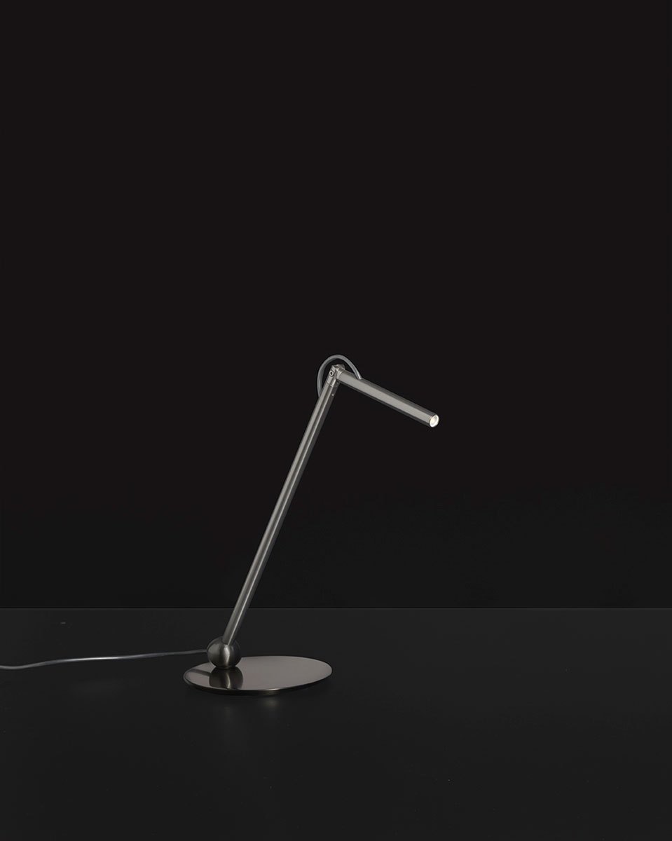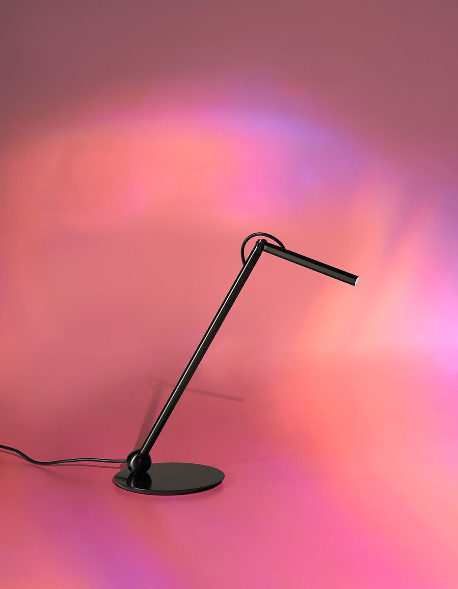 Calamaio segna la prima collaborazione tra Oluce e tre giovani talenti italiani: Marco Cervelleri, Giulia Di Lorenzo e Giacomo Montini. Questa lampada da scrivania si distingue per il suo design estremamente minimalista e la sua libertà di movimento. La testa della lampada infatti può ruotare su una struttura altrettanto mobile, permettendo di indirizzare la luce esattamente dove è necessaria.