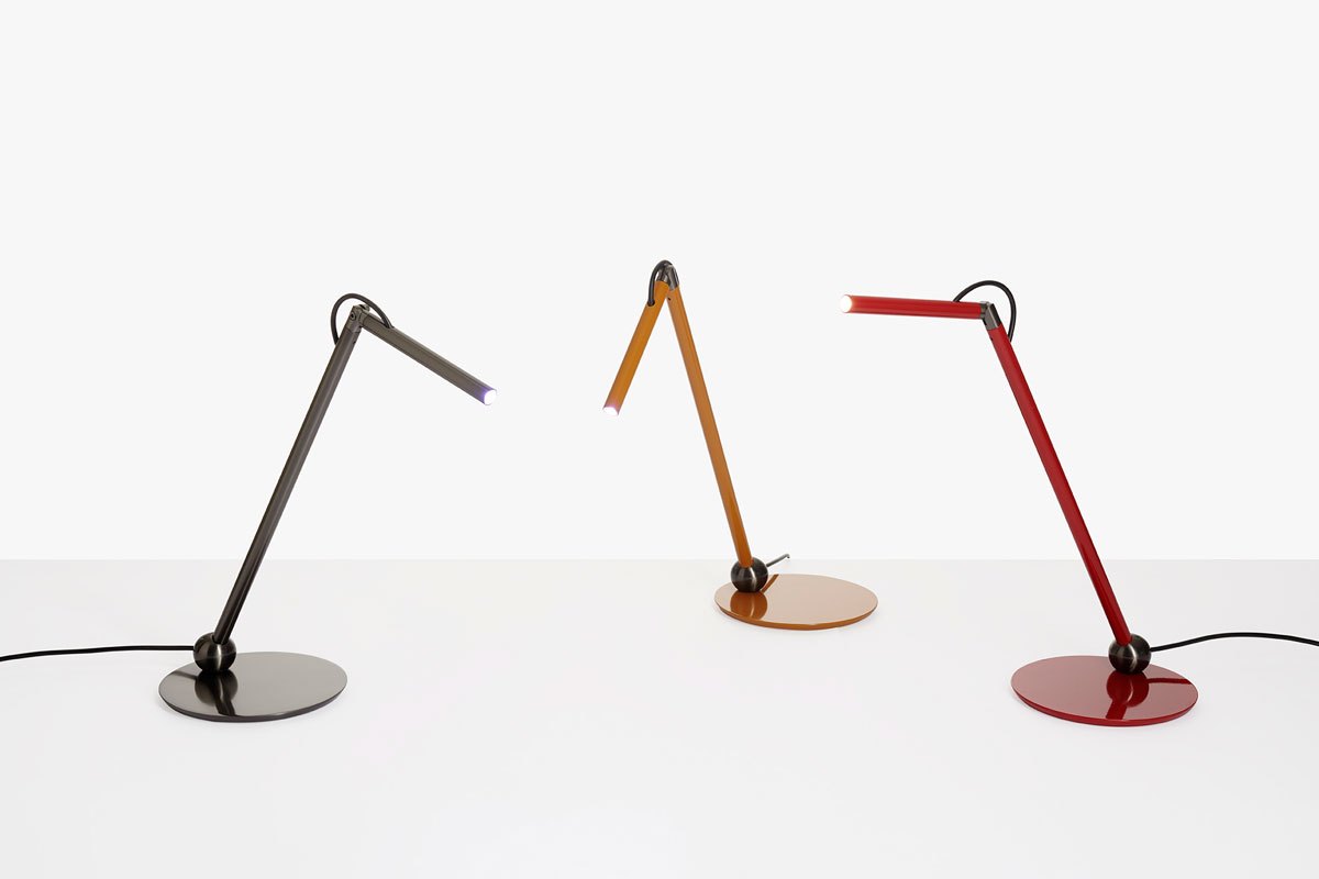 Interamente prodotta in metallo, Calamaio è dotata di una sorgente luminosa a LED situata all’estremità, che emette un fascio di luce diretto. Leggera e flessibile, si distingue per i suoi colori vivaci e la finitura lucida, disponibili nei toni di rosso scarlatto, giallo senape e nickel nero satinato.