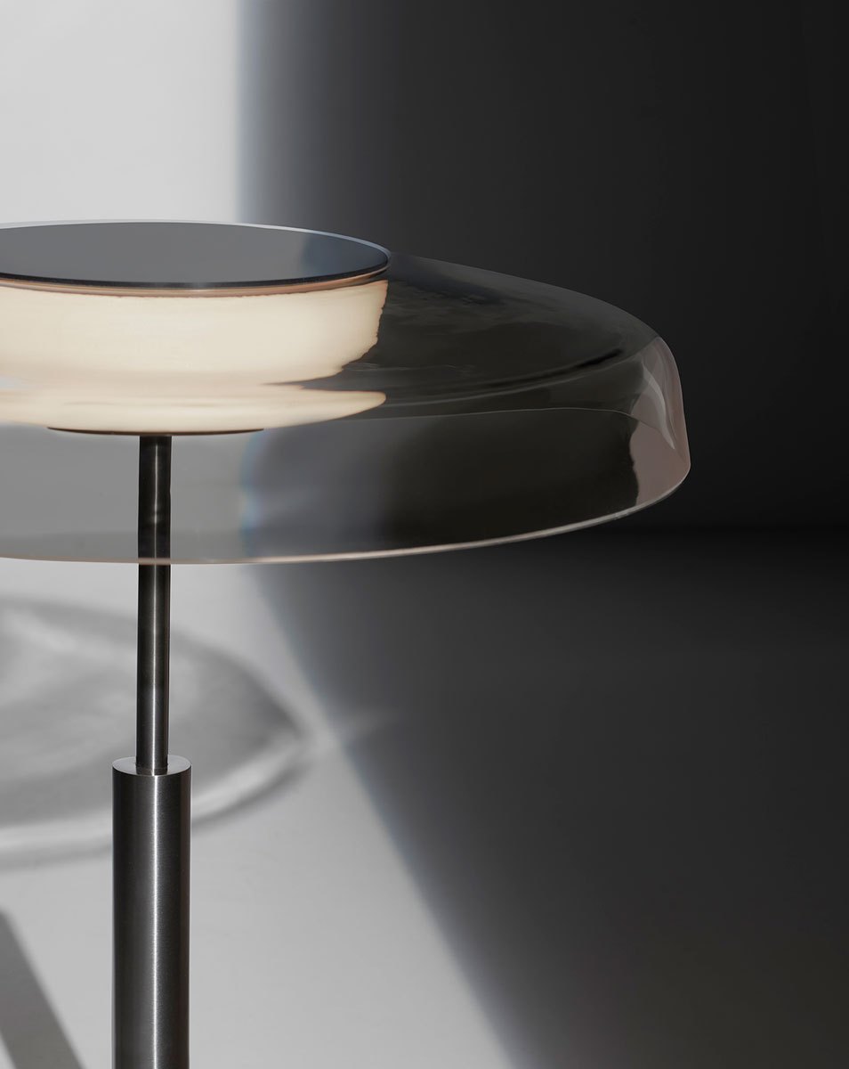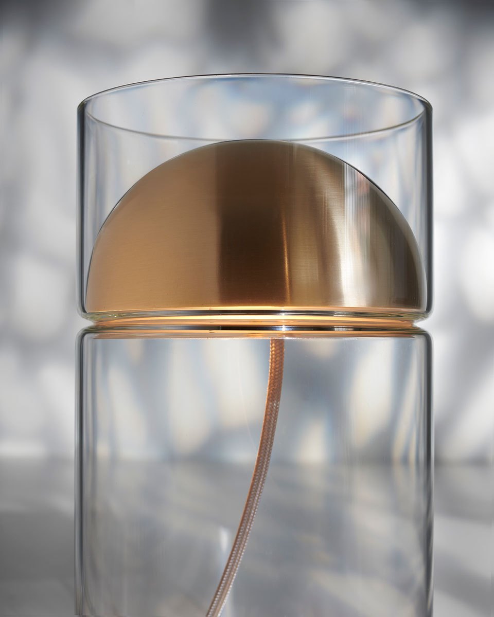Medusa nasce dalla prima collaborazione assoluta tra Oluce e i designer italiani Andrea Quaglio e Manuela Simonelli. Questa lampada da tavolo in vetro si distingue per il suo innovativo design, che vede una cupoletta metallica incorporata all’interno di un cilindro in vetro: la cupoletta ospita la sorgente luminosa, mentre il cilindro diffonde delicatamente la luce sulla superficie circostante.