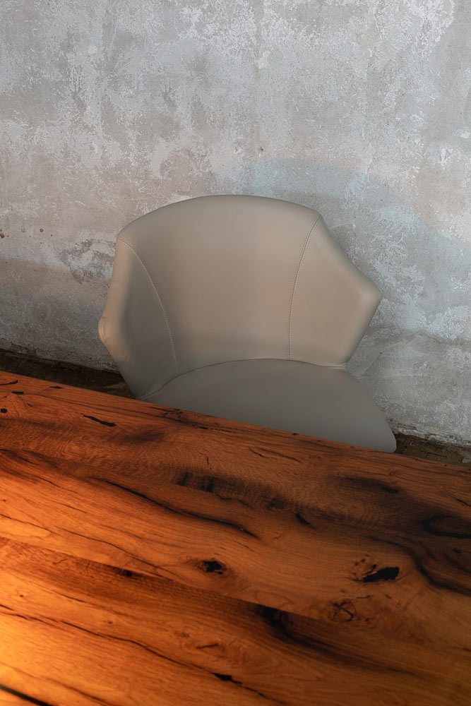 L’ispirazione nasce da un fiore appena sbocciato e dalla sua delicatezza. Questa poltroncina dal sapore classico e intramontabile, infatti, si fa notare subito per il suo charme sofisticato, da diva d’altri tempi. A cui aggiunge, però, un tocco grintoso: l’abito in pelle haute couture, cucito alla perfezione.