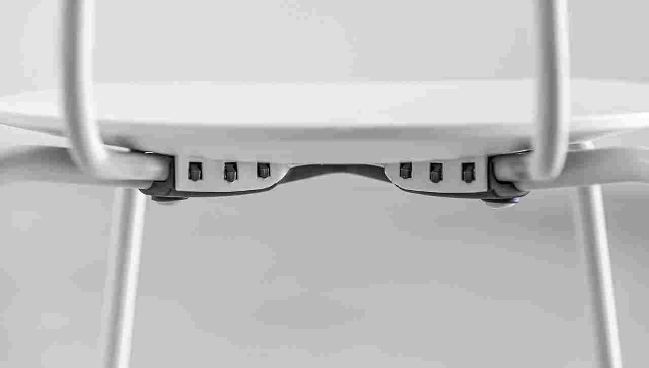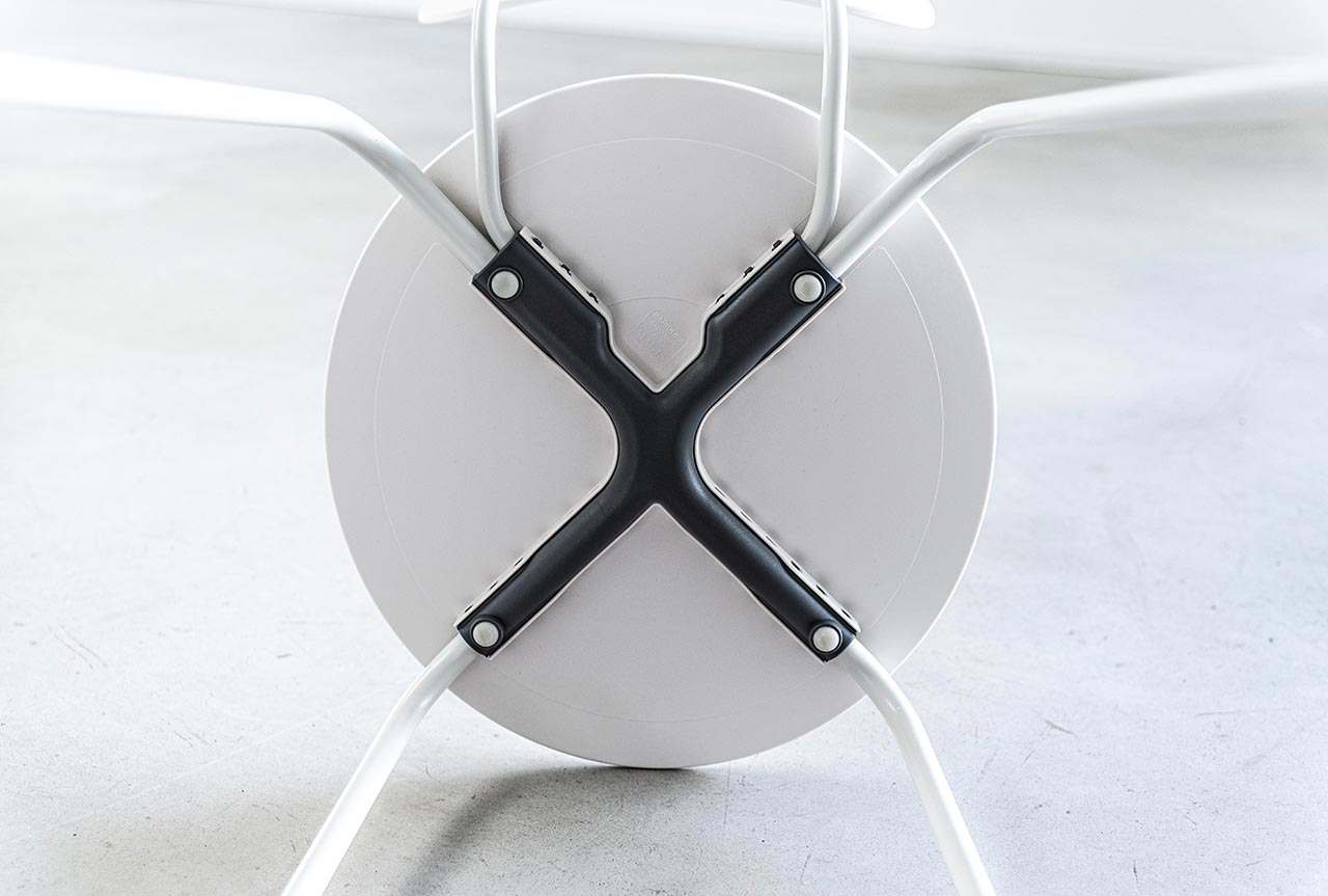 Per l’occasione, Mariolina ha deciso di cambiare look e di abbandonare le tinte sgargianti per presentarsi nella nuova versione Mariolina Mono, in total black o nel più estivo abito candido. Lo stile ricorda sempre quello degli anni Cinquanta, ma sono i dettagli a darle un’allure e un’eleganza tutta nuova: la sezione delle gambe in tubo di acciaio o verniciato è più esile e precisa, mentre il sedile e lo schienale in polipropilene sono fissati alla struttura senza viti, attraverso una serie di nervature in plastica stampate.