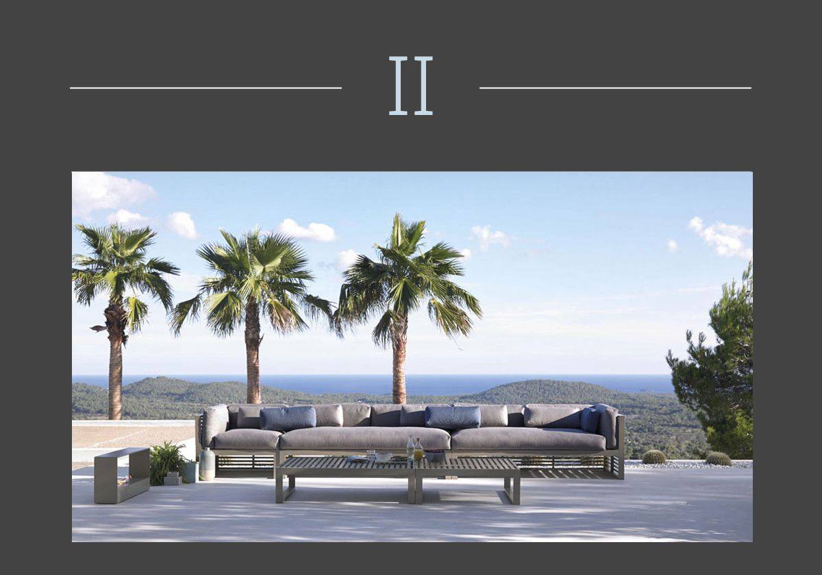 I divani outdoor esistono nelle versioni modulari, monoblocco o con la struttura separata dai cuscini e di tutte le misure per adattarsi ad ogni spazio e potere essere modificati nel tempo. Leggerissimi o massicci, in alluminio, acciaio o legno con sedute e cuscini rivestiti con tessuti tecnici idrofughi, fanno concorrenza a quelli per interni, perché sono pratici anche in casa, dove non è la pioggia o la salsedine, ma sono il bicchiere di vino rosso, la cenere di una sigaretta o il pennarello di un bambino a darci dei grattacapi.