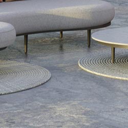 Candidi, tondi e intrecciati in cerchi concentrici, questi tappeti decorano lo spazio con delicatezza.