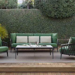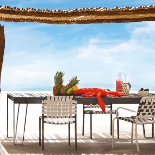 Tanti cuscini e una seduta generosa: basta questo per tradurre i dettami del comfort nel perfetto arredo outdoor. La chaise longue che reinterpreta l’estetica dei classici arredi in vimini coniuga l’estetica pulita con il relax più informale e diventa protagonista assoluta dello spazio all’aperto.