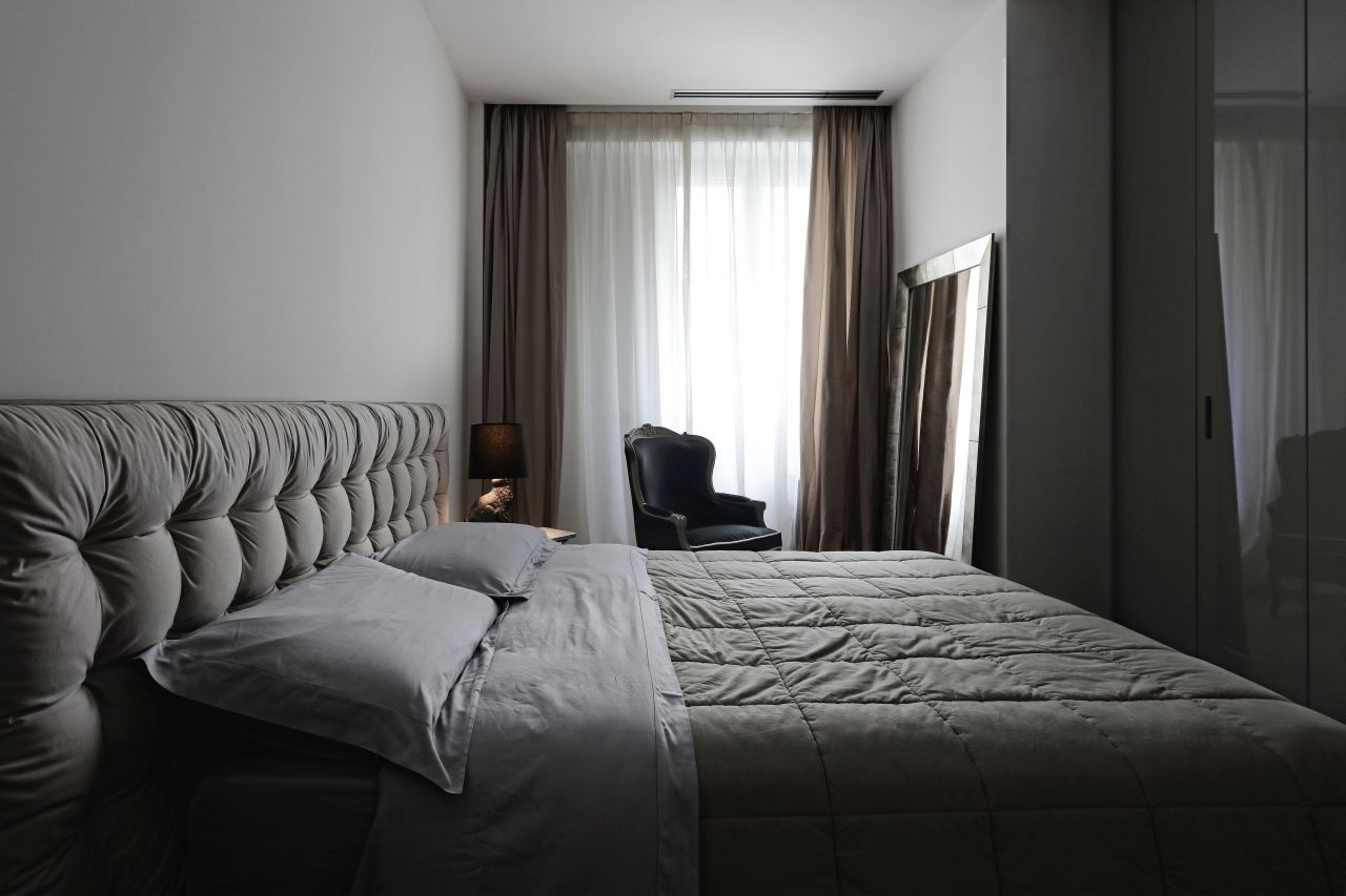 Siamo in una piccola piazza alberata invasa da biciclette in pieno centro a Milano, in un palazzo degli anni ’40 a pochi passi dal Duomo. Al frenetico via e vai metropolitano si contrappone un ambiente sereno in cui anche una manager super dinamica può veramente riposarsi.