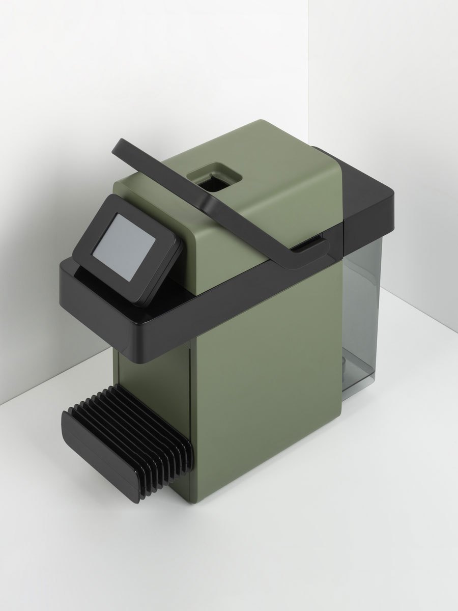 “Le macchine del caffè con capsule non hanno una tradizione antica, sono elettrodomestici recenti. Ho quindi cercato di riportare l’oggetto a un’idea di design dalle forme basilari: una macchina misteriosa protagonista di un nuovo rituale del caffè, contemporaneo e senza precedenti.” spiega il designer Odo Fioravanti.