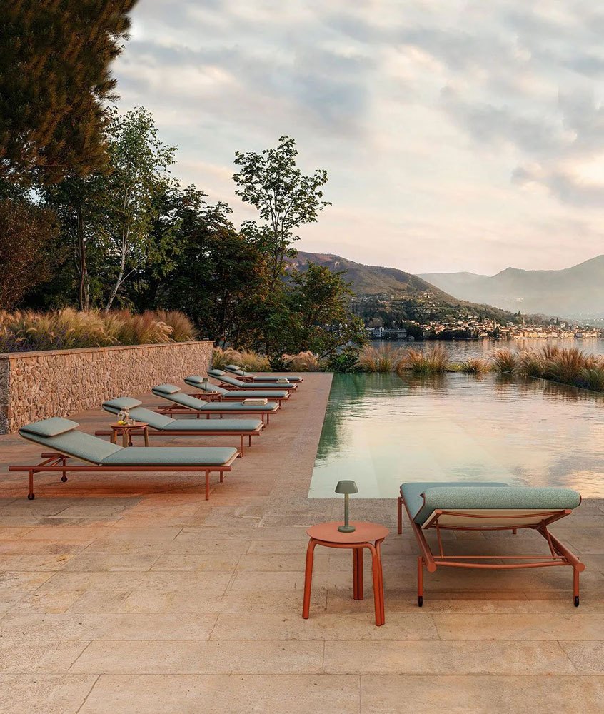 La collezione Salò si distingue per una versatilità che parla a più pubblici: dal privato alla hotellerie di lusso. Include divani modulari a due e tre posti, poltrone lounge e da pranzo, lettini prendisole impilabili e tavoli di varie dimensioni, disponibili con piani in alluminio o in gres nelle finiture Terracotta e Deserto.