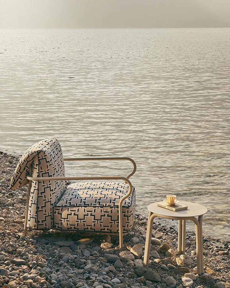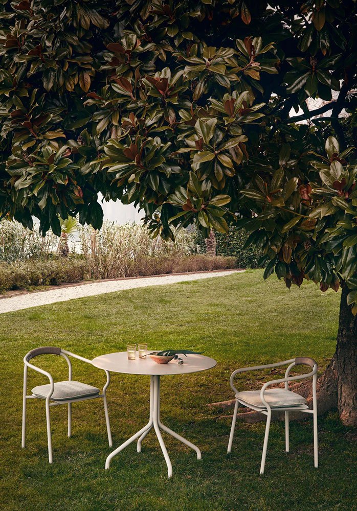 Il filo conduttore di tutta la collezione è la leggerezza: non solo visiva, ma anche strutturale. Le sedute da giardino e i tavoli sono realizzati in alluminio ultra-leggero, declinato in quattro tonalità naturali—terracotta, salvia, grafite e sabbia—che rimandano ai colori della terra e dell’acqua.