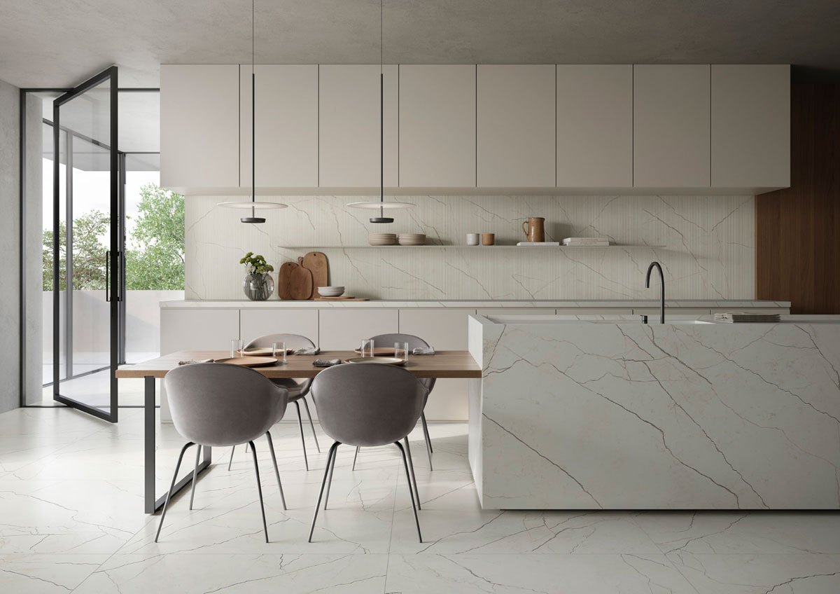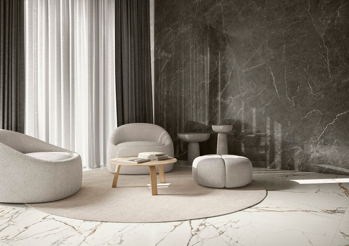 Delicate venature, preziosi giochi di chiaroscuro, dettagli ricercatissimi e dai colori vibranti, il gres porcellanato di Marmora conquista per l’eleganza senza tempo che dona agli ambienti di casa.