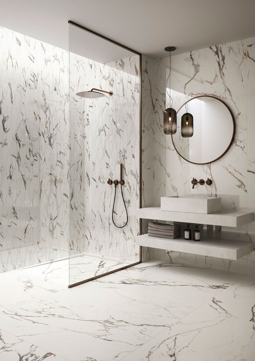 L’elaborata e antica bellezza del marmo, materiale nobile per eccellenza, rivive nelle lastre di Marmora, la nuova collezione di rivestimenti di Casalgrande Padana.