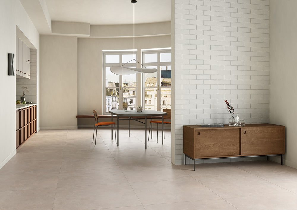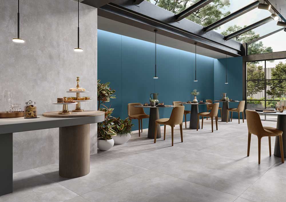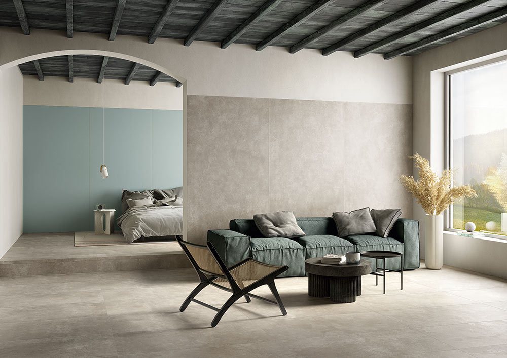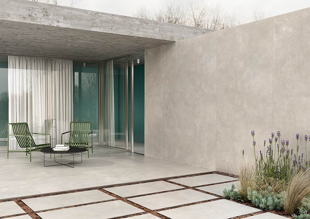 Squadrate e rettificate, le lastre in gres porcellanato effetto cemento hanno la superficie naturale per l’interno e antiscivolo per l’outdoor e sono studiate per creare un senso di continuità in qualsiasi spazio perché permettono di ridurre al minimo le fughe e renderle quasi impercettibili. Ma non solo: lo spessore ultraslim di mm 6,5 consente di rivestire persino pareti, quinte sceniche, mensole, top, tavoli e pensili.